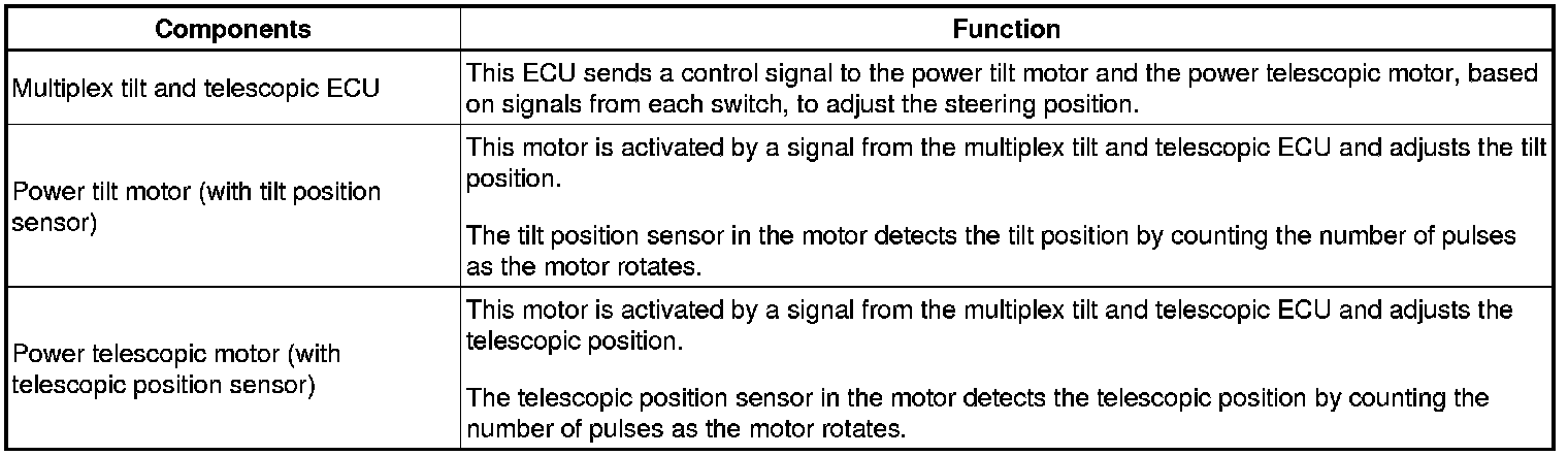 STEERING COLUMN: POWER TILT AND POWER TELESCOPIC STEERING COLUMN SYSTEM: