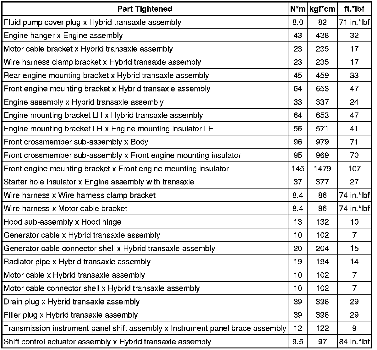 SPECIFICATIONS: P410 HYBRID TRANSMISSION / TRANSAXLE: TORQUE SPECIFICATIONS