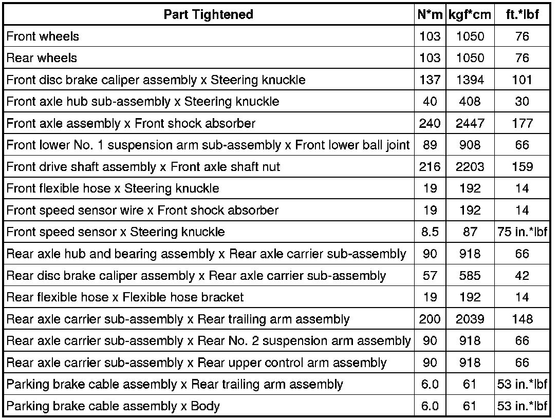 SPECIFICATIONS: AXLE AND DIFFERENTIAL: TORQUE SPECIFICATIONS