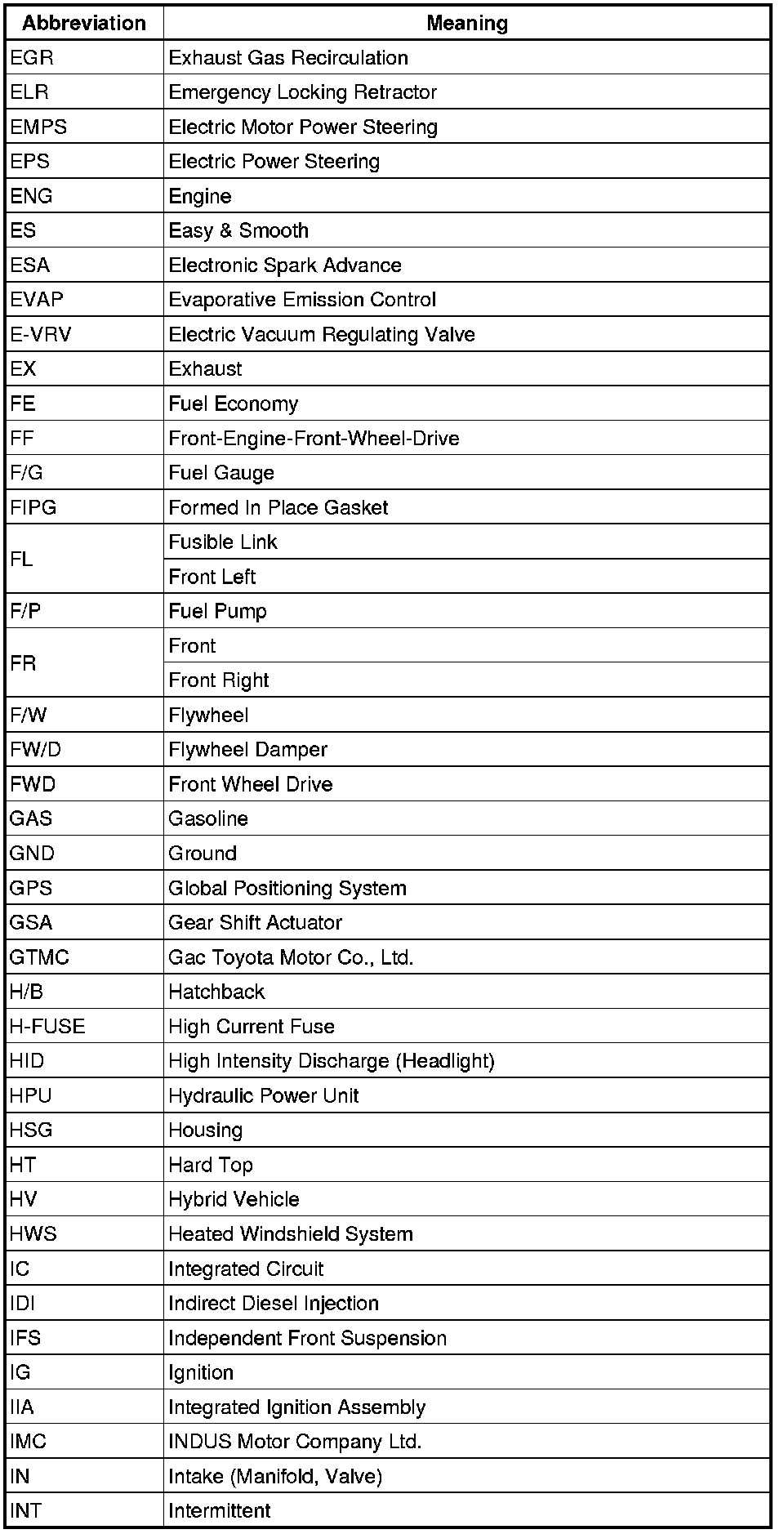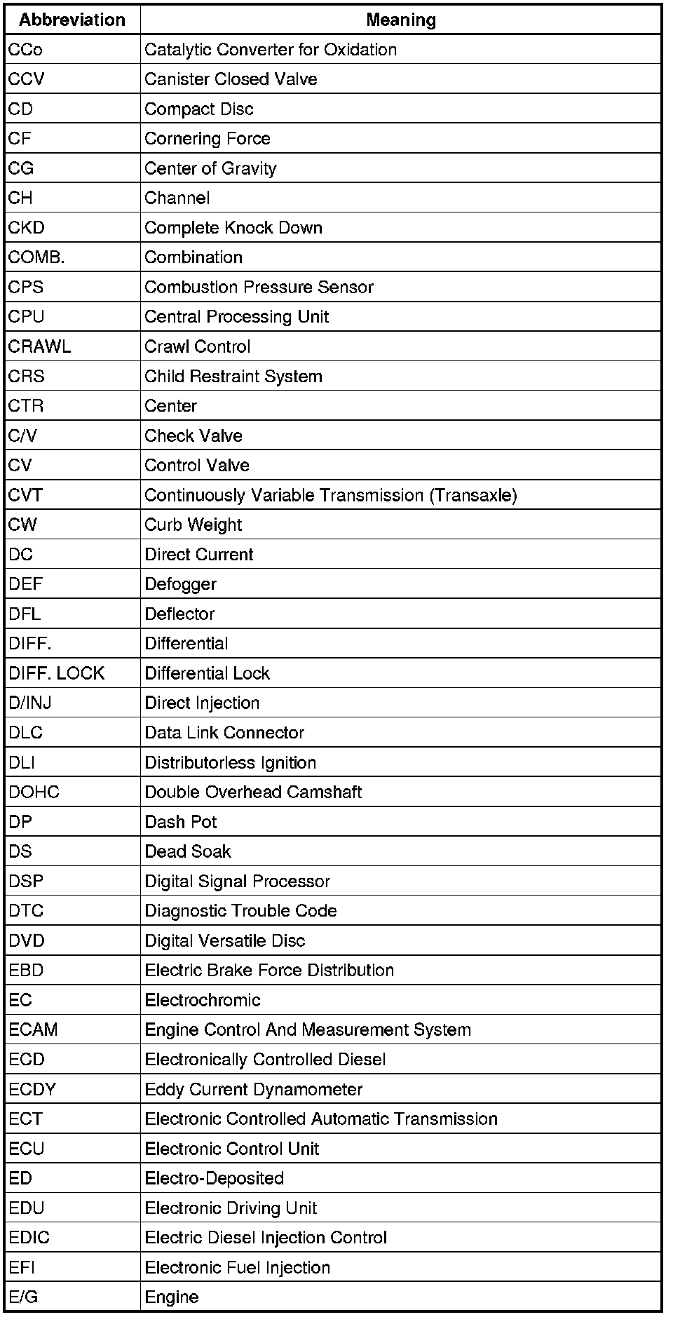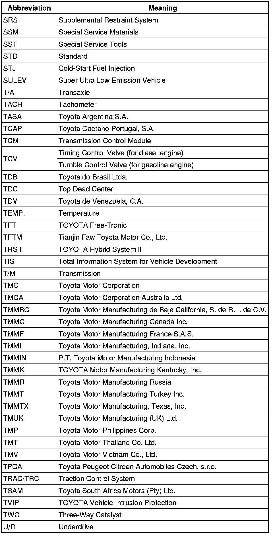 Terms - Abbreviations Used In Service Procedures