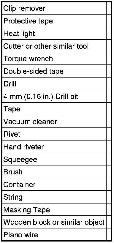 PREPARATION: EXTERIOR PANELS / TRIM: EQUIPMENT