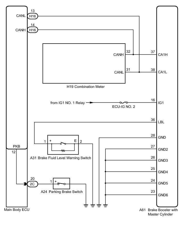 10. CHECK HARNESS AND CONNECTOR (MAIN BODY ECU - PARKING BRAKE SWITCH)