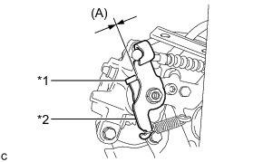 (a) Release the parking brake pedal and check that the clearance measurement between the rear disc brake cylinder operation lever and the stopper is within the specified range.
