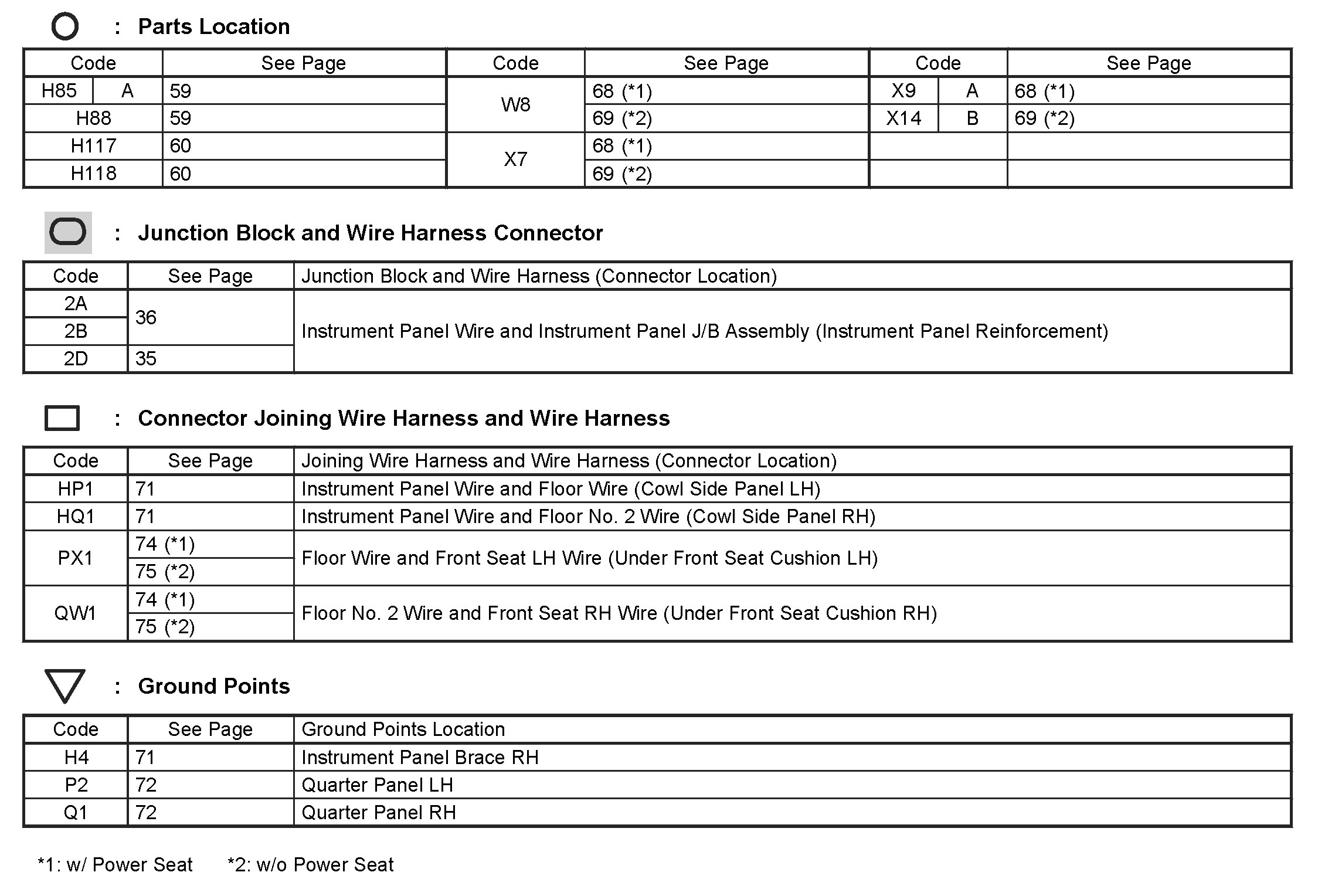 Locations: The locations of components, connectors, ground points, and splices referred to within these diagrams can be found at Vehicle Locations. Component Locations