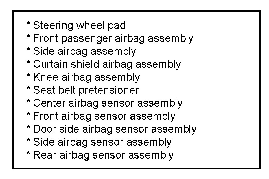 - Even in cases of a minor collision where the SRS does not deploy, the following parts should be inspected;