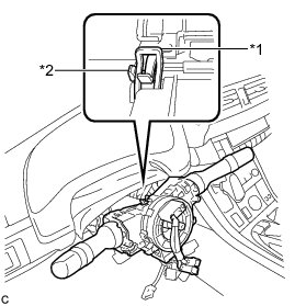 (c) While holding the clamp expanded, raise the claw using a screwdriver to disengage it, and then remove the turn signal switch assembly with spiral cable sub-assembly from the steering column assembly.