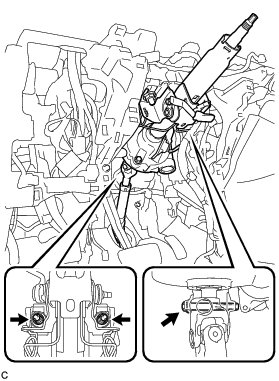 (e) Disengage the 2 claws to remove the steering column cover (upper side).