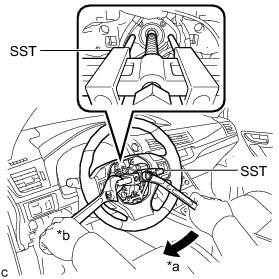 * Do not rotate the spiral cable without the steering wheel with the battery connected and the power switch on (IG).
