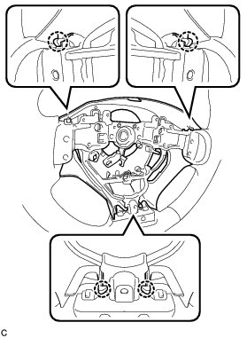 (b) Disengage the 4 claws to remove the lower steering wheel boss cover from the steering wheel sub-assembly.