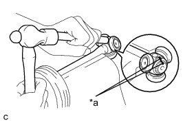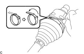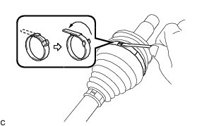 (a) Using a screwdriver, release the staked part of the front No. 2 axle outboard joint boot clamp and separate the front No. 2 axle outboard joint boot clamp as shown in the illustration.