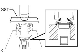 (a) Using SST and a press, install a new front drive shaft dust cover into the front drive inboard joint assembly until it is flush with the end.