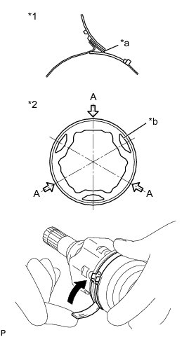 (a) Install the front axle inboard joint boot clamp onto the inboard joint boot and temporarily fold back the lever.