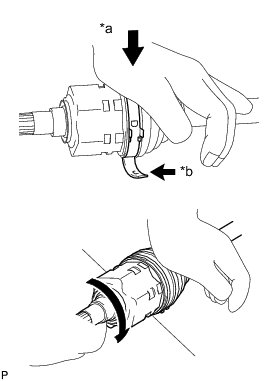 (a) Secure the front axle outboard joint shaft assembly in a vise using aluminum plates.