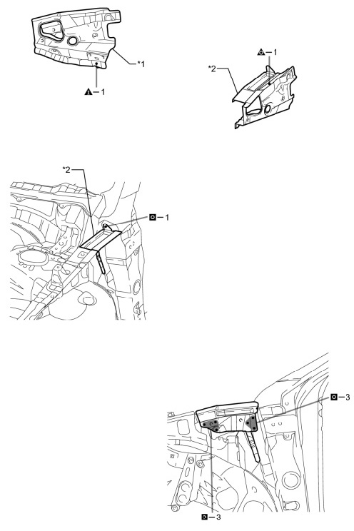 2. Attach *2 after attaching *1 to the vehicle for attaching the new part.