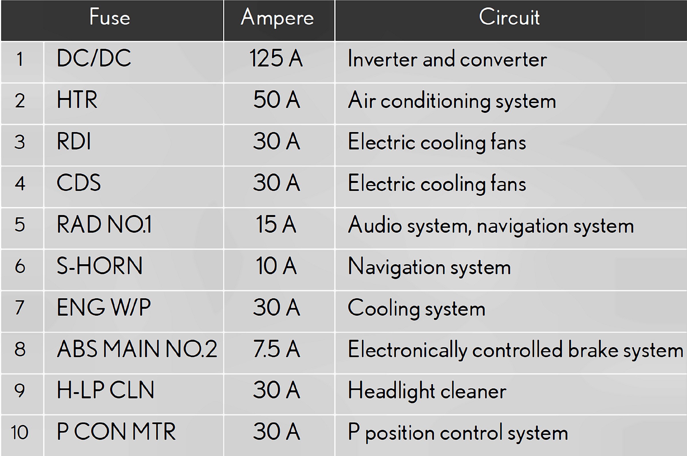 Fuses 1-10: