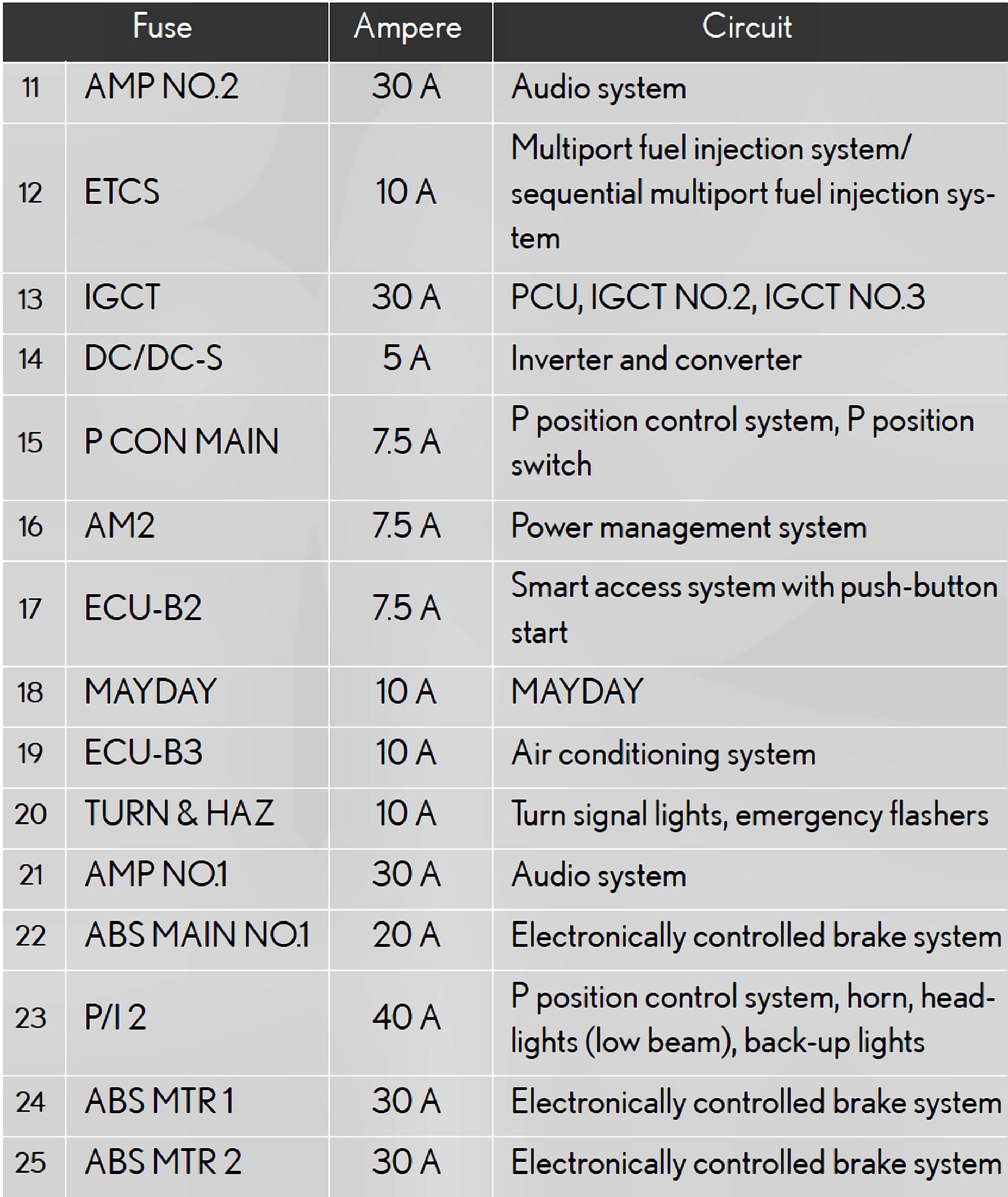 Fuses 11-25: