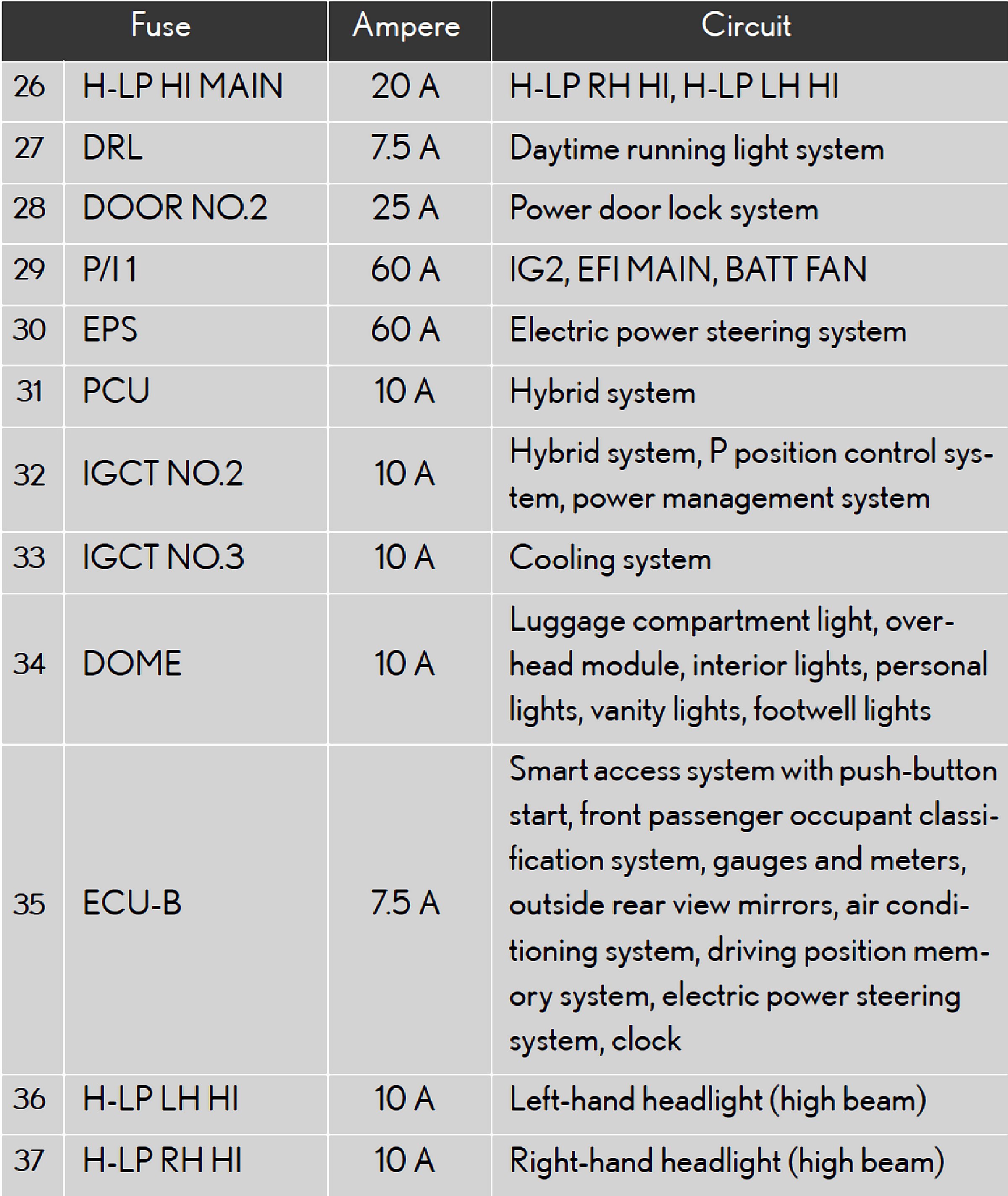 Fuses 26-37: