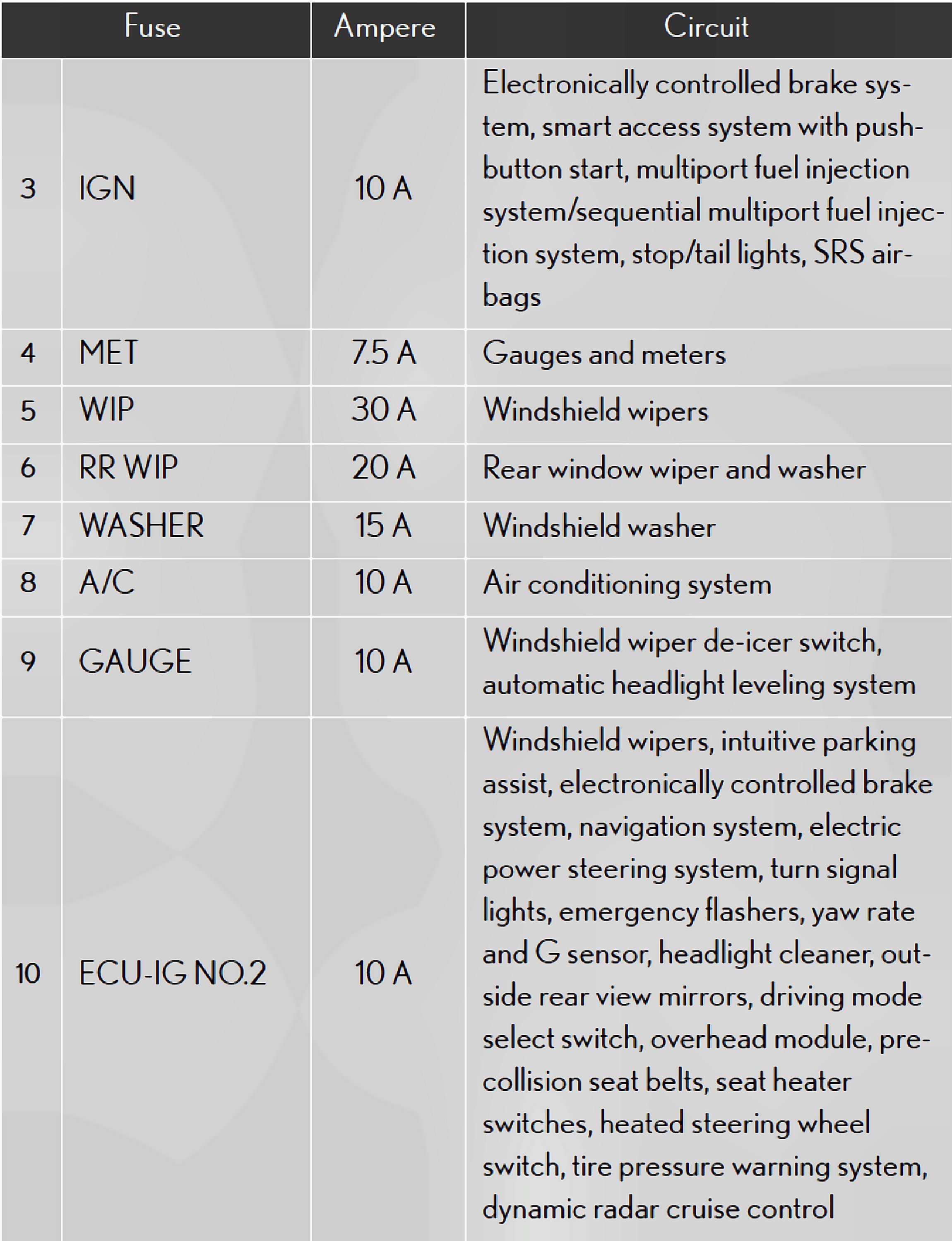 Fuses 3-10: