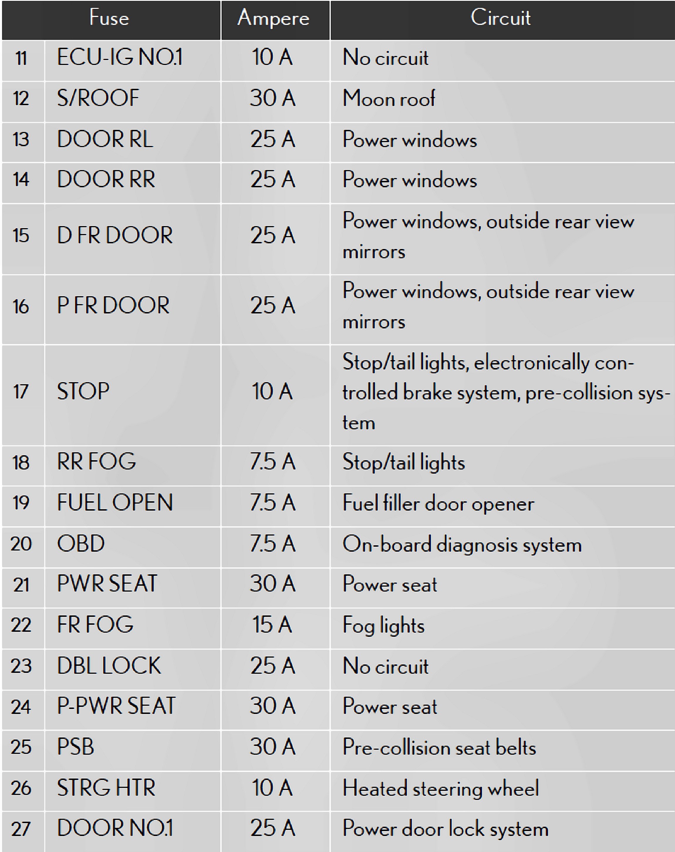 Fuses 11-27: