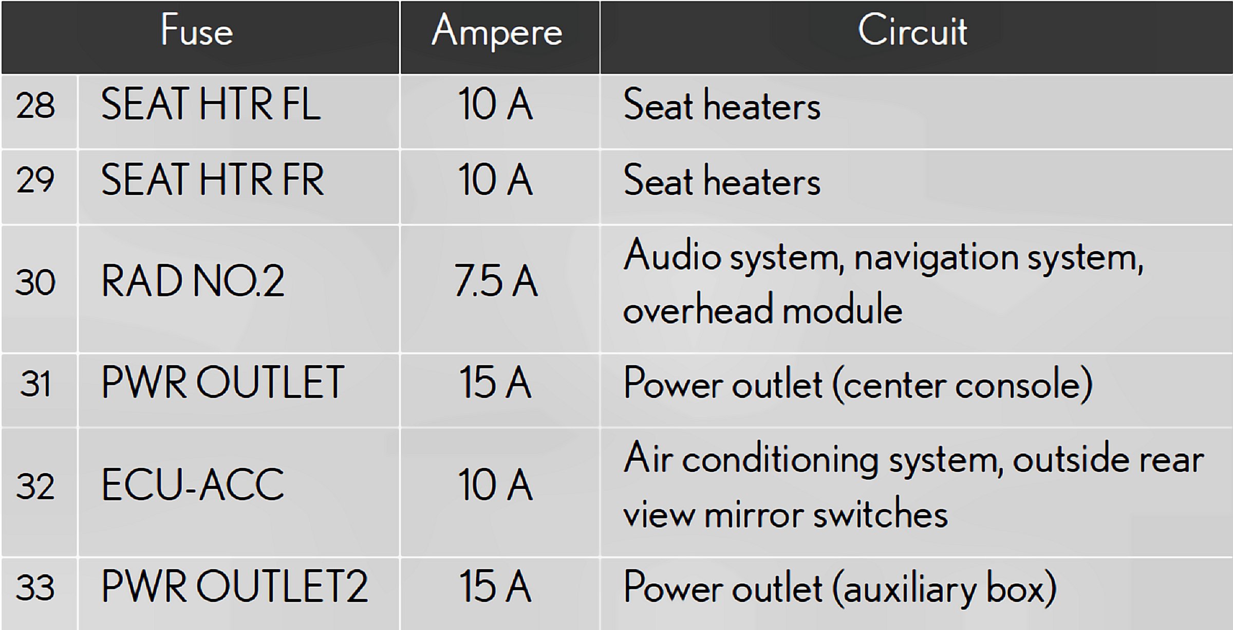 Fuses 28-33: