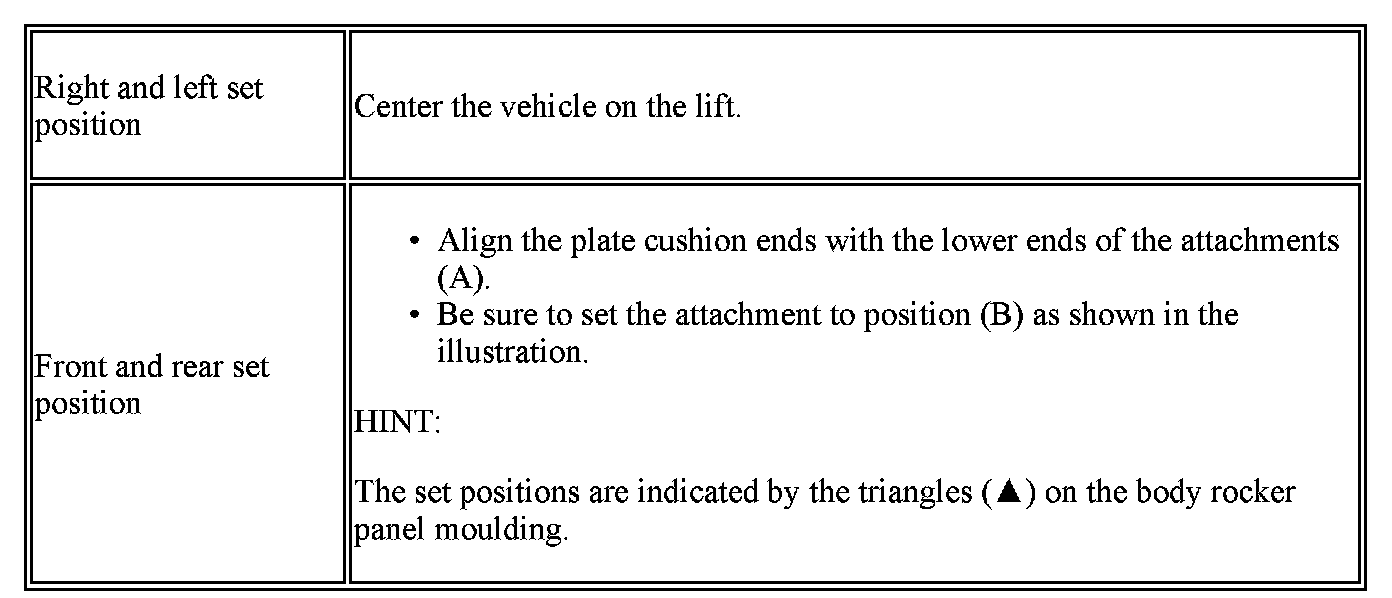 c. Be sure to set the vehicle to the specified position described in the following chart and shown in the following illustration.