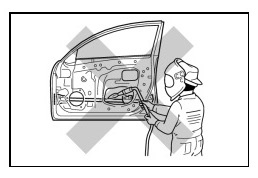 a. Rustproof high strength steel sheets are used for the body frame. Therefore, if these parts are heat repaired using an acetylene torch or equivalent, the crystalline structure changes, causing the strength of the steel sheets to decrease. Also, the zinc coating which is used to protect the body from rust will be damaged. This causes the surface of the steel sheets to become oxidized, which reduces their ability to resist rust.