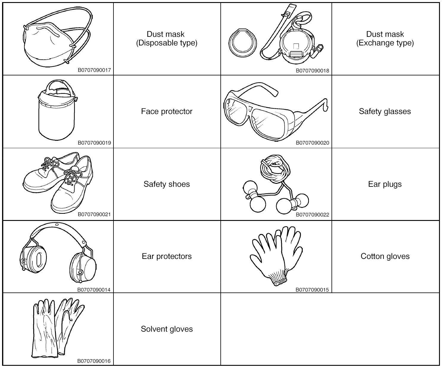 - Always wear protective glasses, ear plugs, dust masks, and other protective equipment to protect your eyes, ears, and respiratory system.