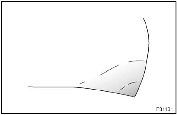1. Inspect visually and brush your hand across the damaged surface to determine the condition of the damaged area and whether there is any stretching. Also, check for any cracking and paint peeling. In cases where no paint defects are found, conduct the work starting from (C).