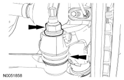 Remove and discard the lower ball joint-to-wheel knuckle nuts.