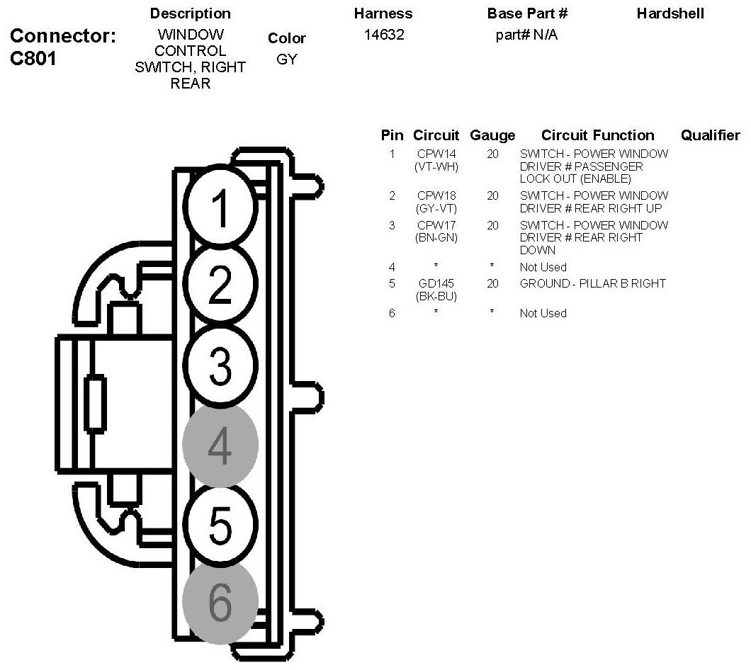 Window Control Switch, Right Rear