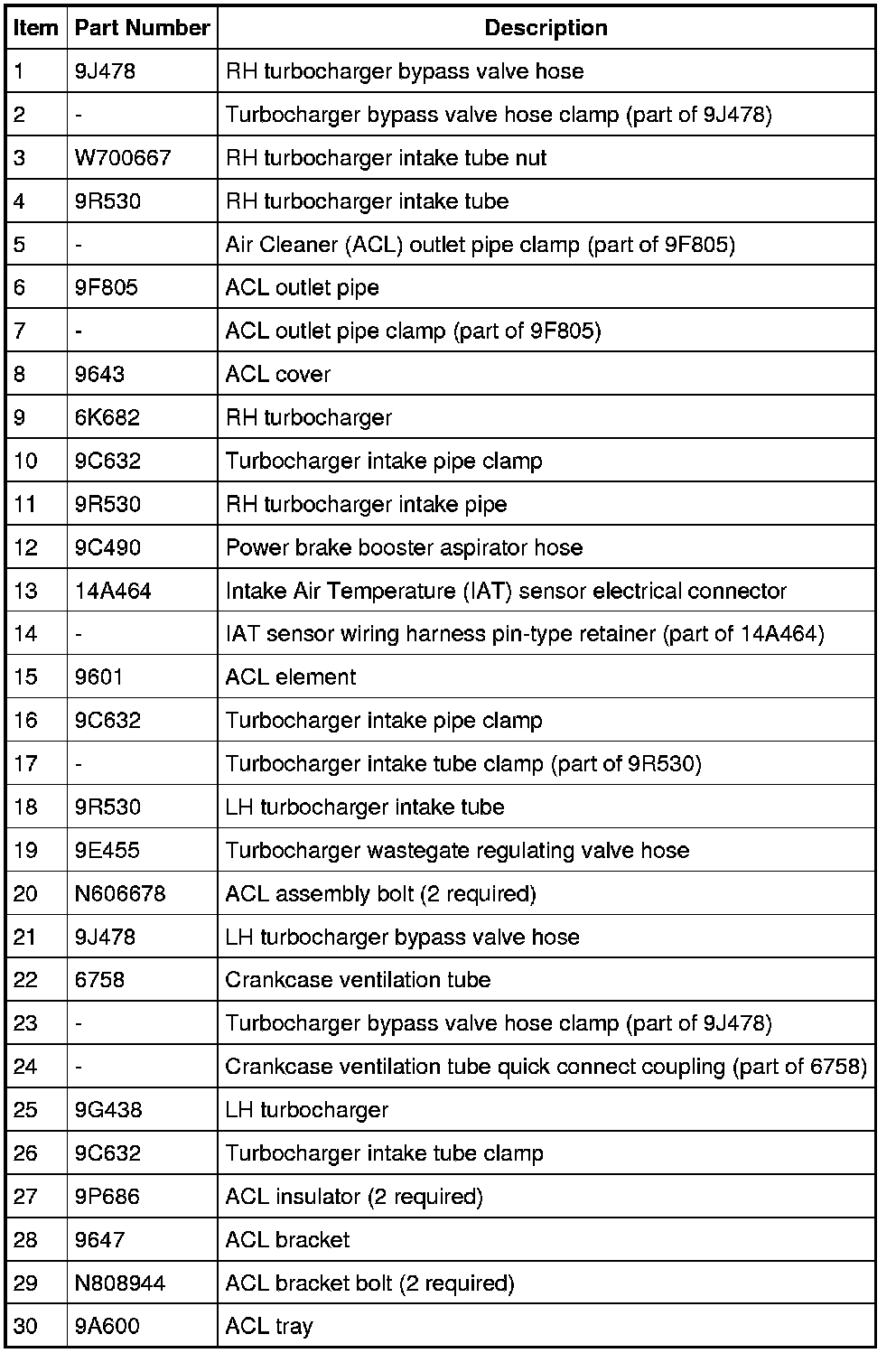 NOTICE: The compression limiter bushing may fall out of the mounting bracket grommets on the turbocharger intake tube or the Charge Air Cooler (CAC) tube during service. Make sure the bushings are in place when reinstalling or damage to the tubes may occur.