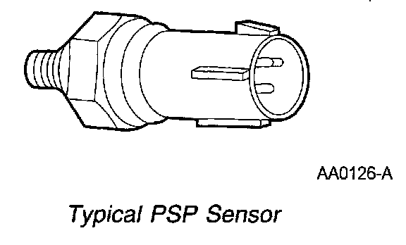 The PSP sensor monitors the hydraulic pressure within the power steering system. The PSP sensor voltage input to the PCM changes as the hydraulic pressure changes. The PCM uses the input signal from the PSP sensor to compensate for additional loads on the engine by adjusting the idle RPM and preventing engine stall during parking maneuvers. Also, the PSP sensor signals the PCM to adjust the transmission EPC pressure during increased engine load, such as during parking maneuvers.