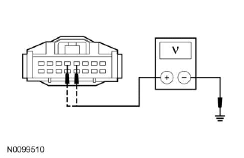 - Measure the voltage between the 4X4 control module C460-4, circuit CBP35 (YE/GY), harness side and ground; and between the 4X4 control module C460-5, circuit SBP11 (BU/RD), harness side and ground.