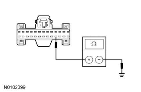 - Measure the resistance between the HVAC module C2356a-17, circuit GD114 (BK/BU), harness side and ground.