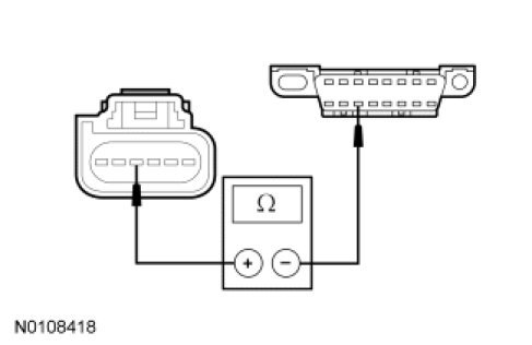 - Measure the resistance between the SOD-R C4229-3, circuit VDB06 (GY/OG), harness side and the Data Link Connector (DLC) C251-3, circuit VDB06 (GY/OG), harness side.