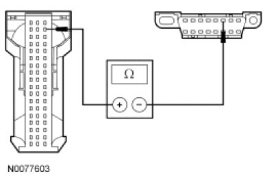 - Measure the resistance between the APIM C3342-53, circuit VDB04 (WH/BU), harness side and the DLC C251-6, circuit VDB04 (WH/BU), harness side.