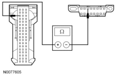 - Measure the resistance between the APIM C3342-16, circuit VDB06 (GY/OG), harness side and the DLC C251-3, circuit VDB06 (GY/OG), harness side.