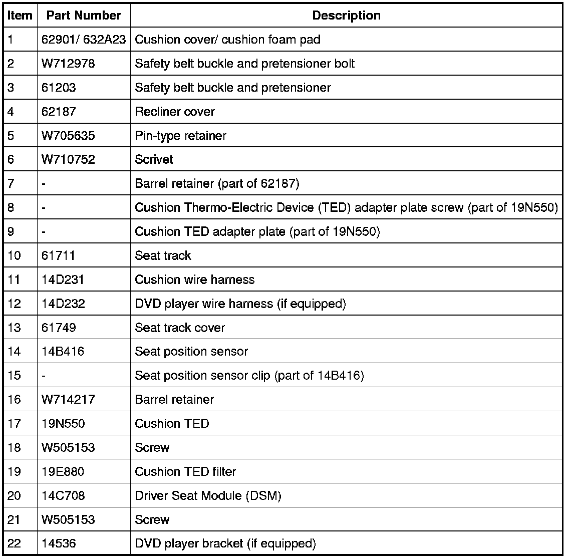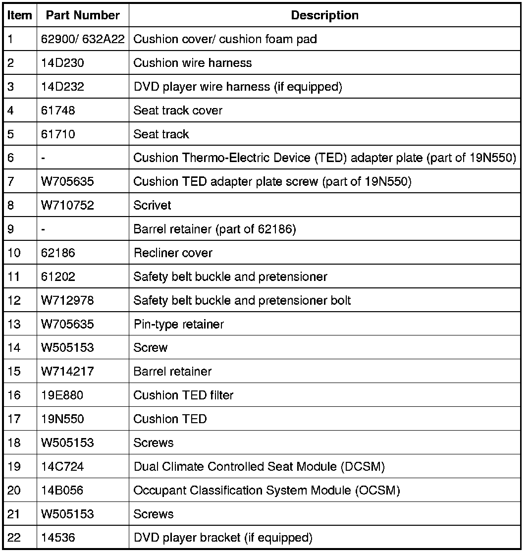 Seat - Exploded View, Front