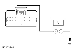 - Measure the voltage between the ILCM (Interior Lighting Control Module) C3256-7, circuit SBP16 (VT/RD), harness side and ground.