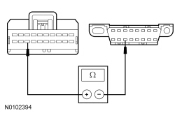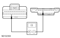 - Measure the resistance between the ILCM (Interior Lighting Control Module) C3256-10, circuit GD114 (BK/BU), harness side and ground.