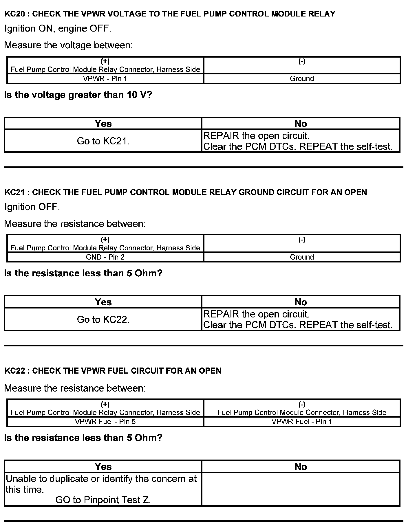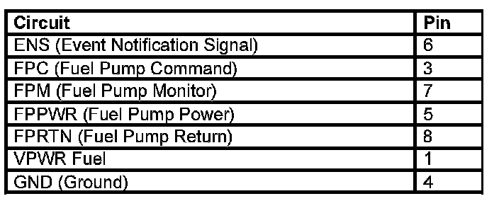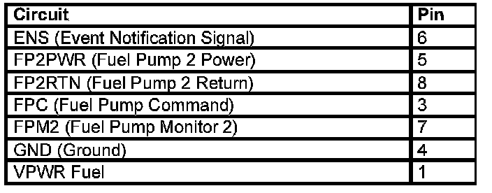 Fuel Pump Control Module Relay Connector - Refer to the Wiring Diagrams for schematic and connector information.