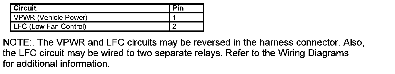 Low Fan Control (LFC) Relay Connector