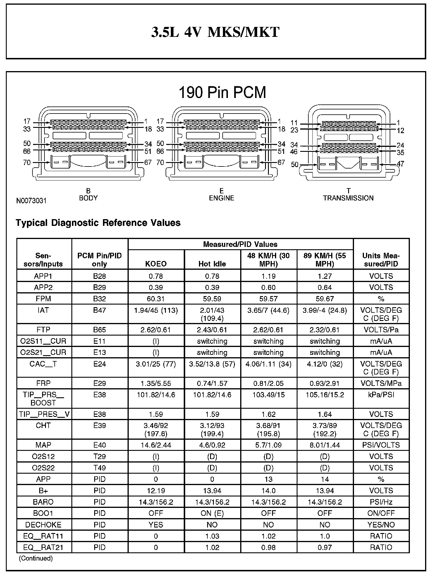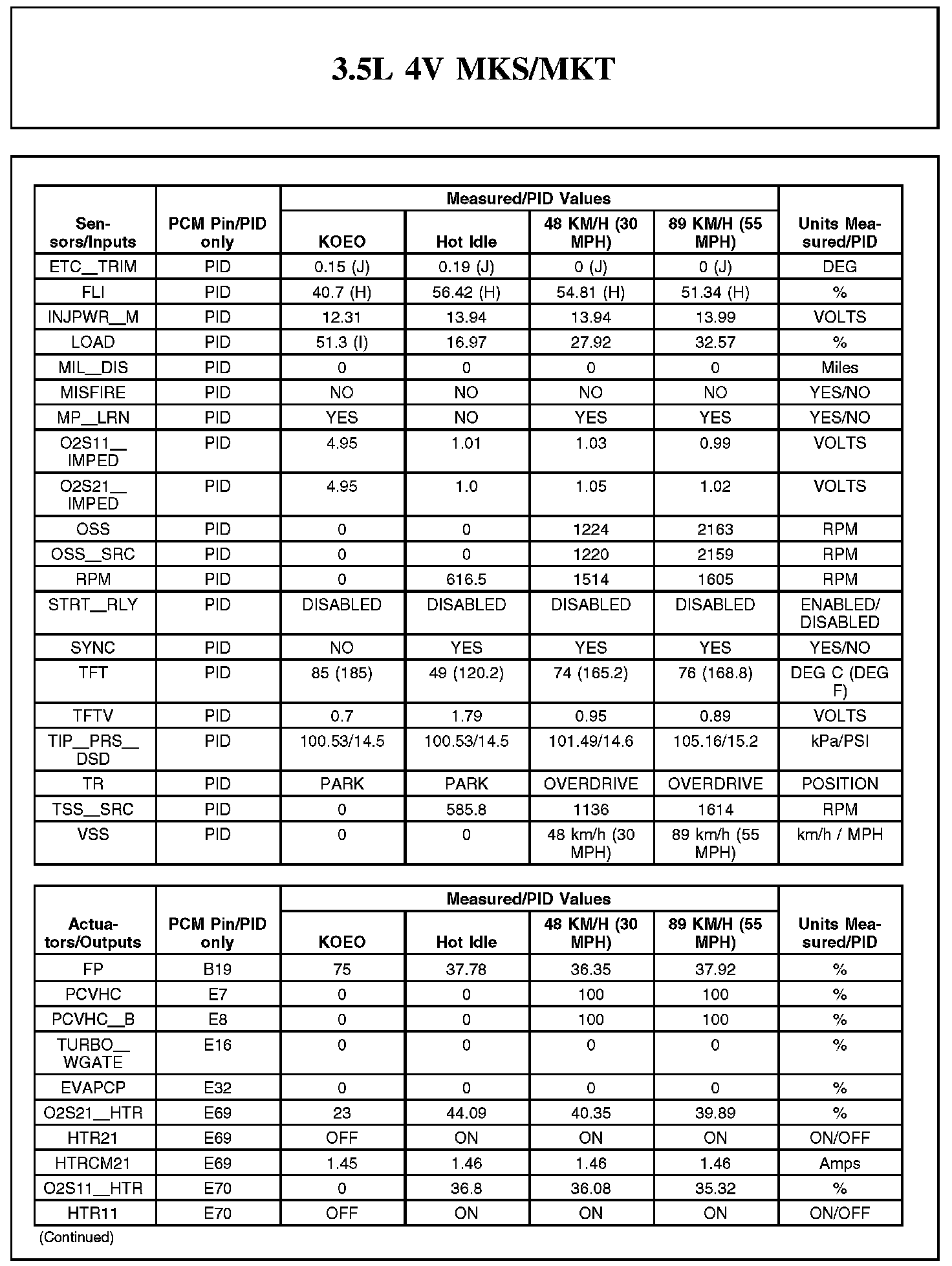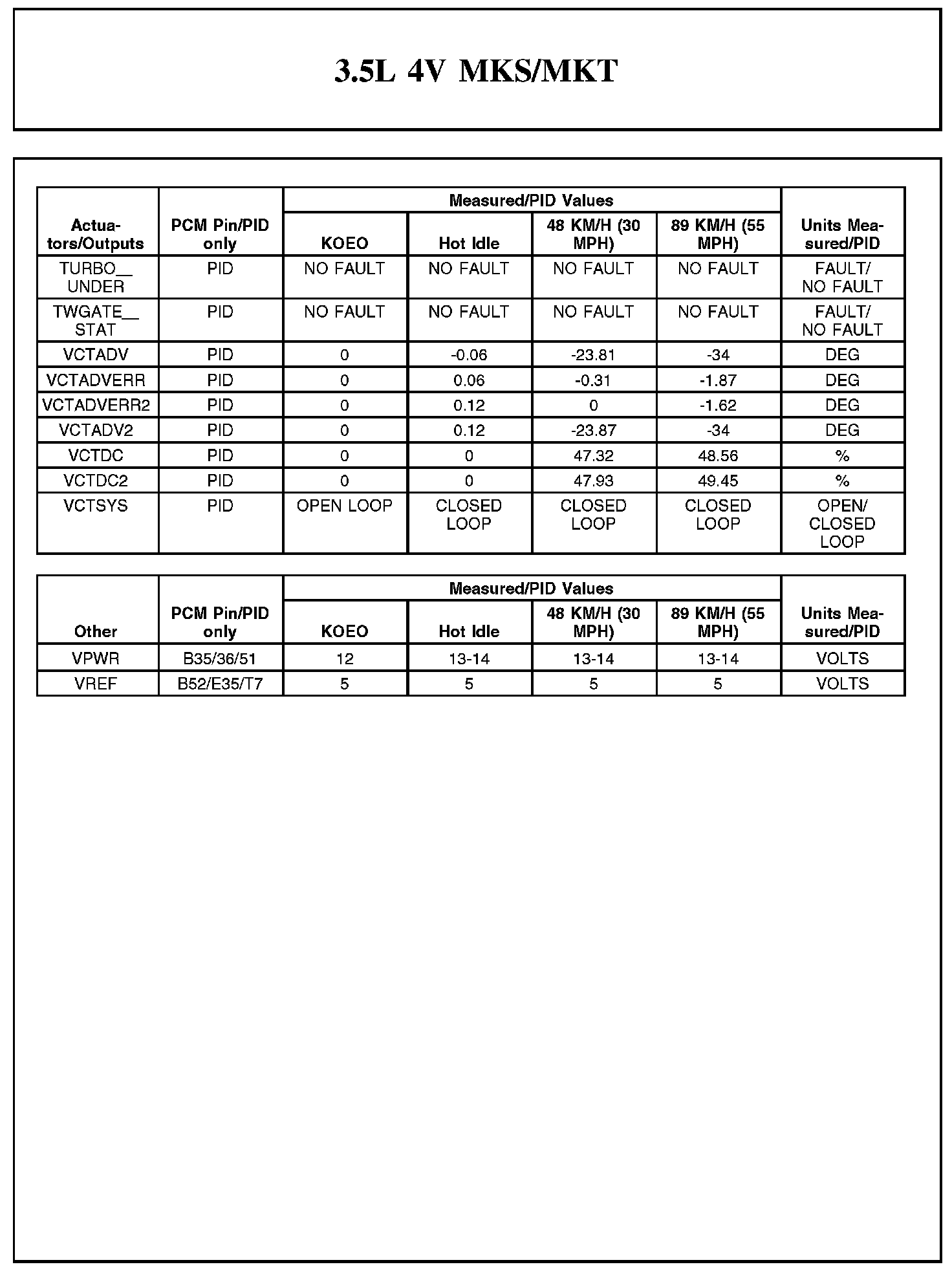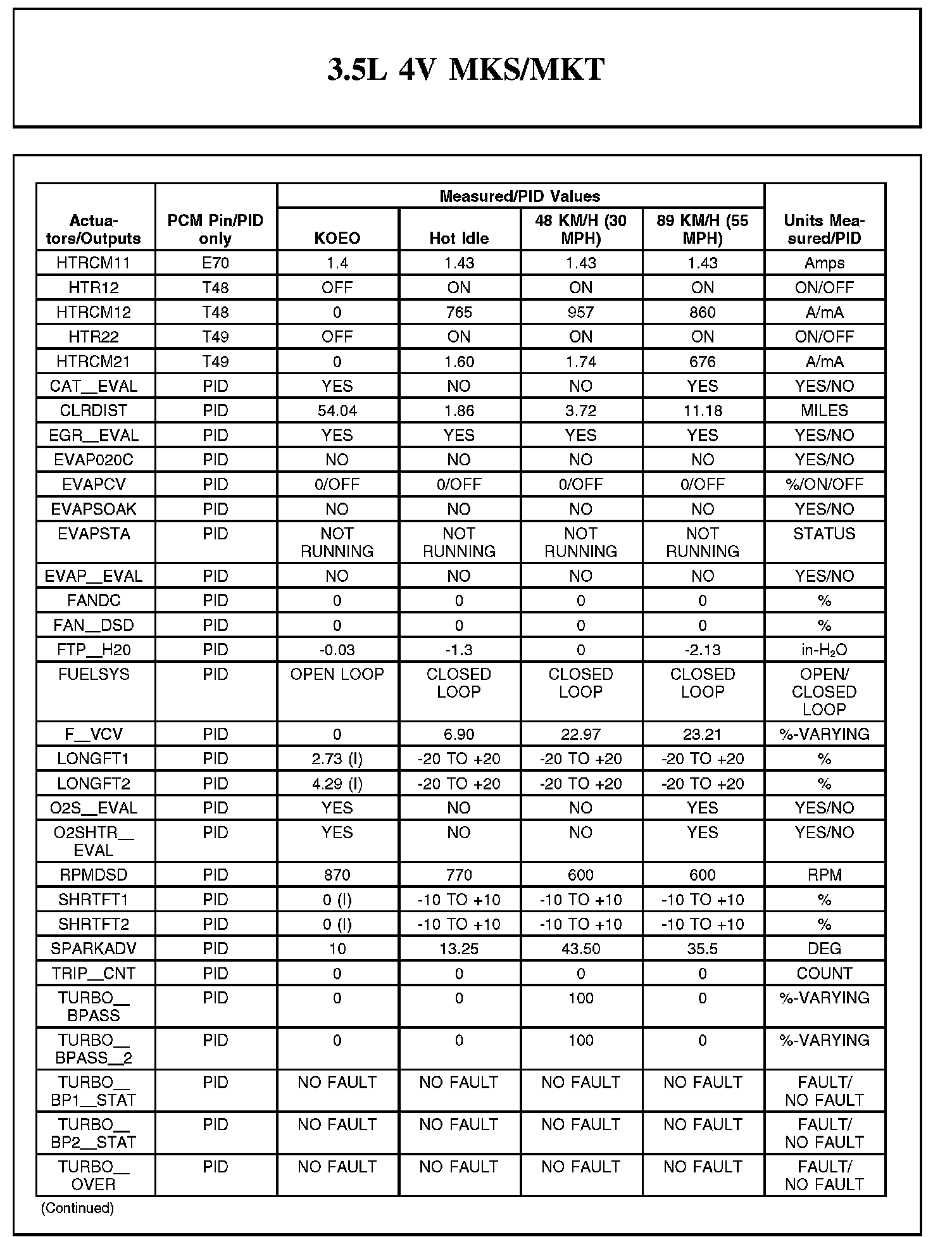 The Typical Diagnostic Reference Value Charts do not display fault parameter identifications (PIDs). These are PIDs which indicate a hard fault with the circuit. They display a value of FAULT or NO FAULT and are PIDs ending with the letter F.