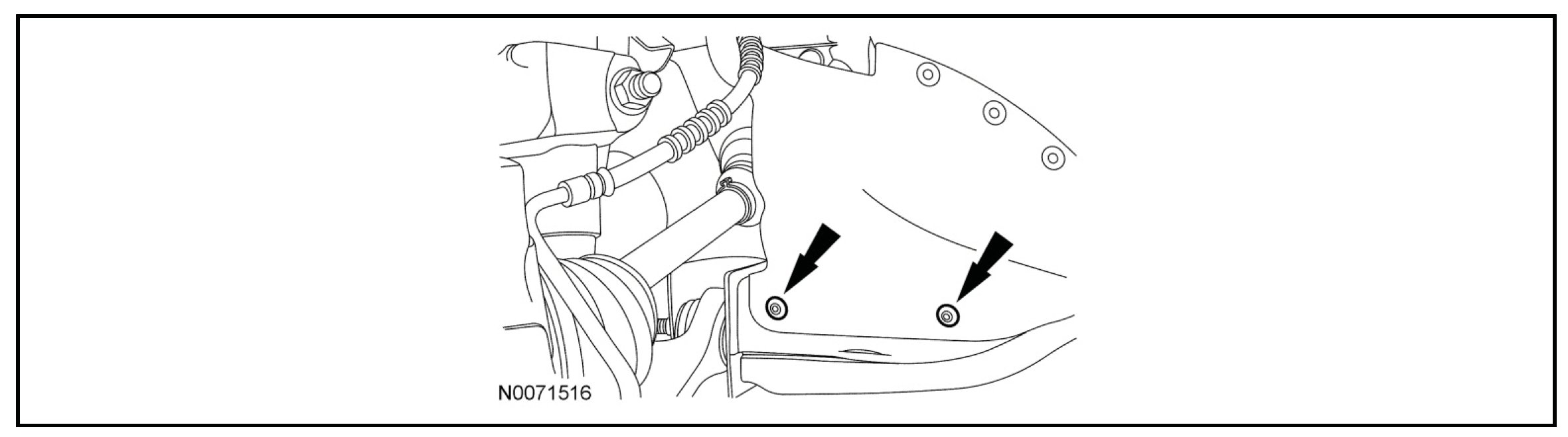 14. Install the power steering gear-to-front subframe bolts and nuts.