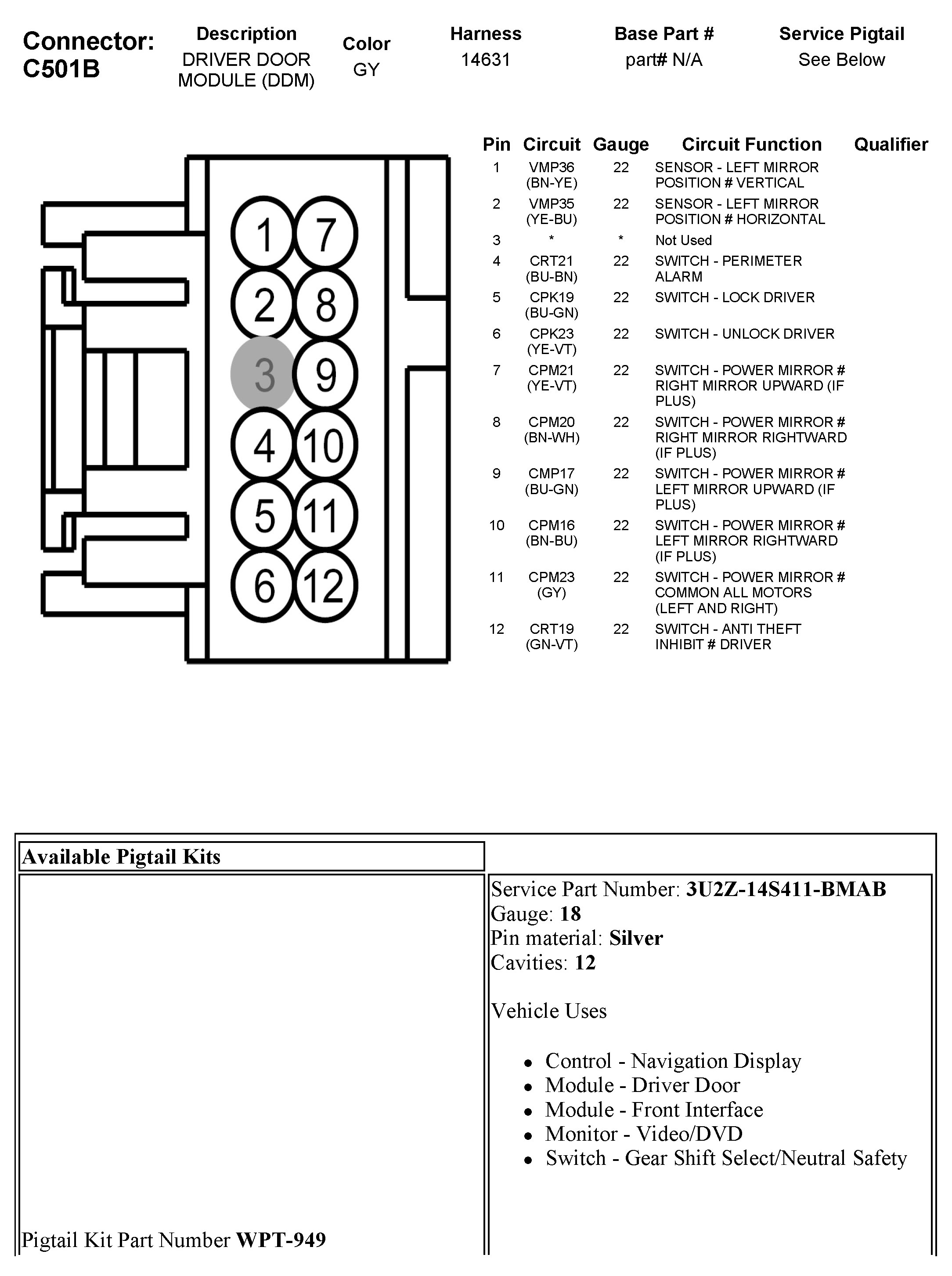 C501B Driver Door Module (DDM)