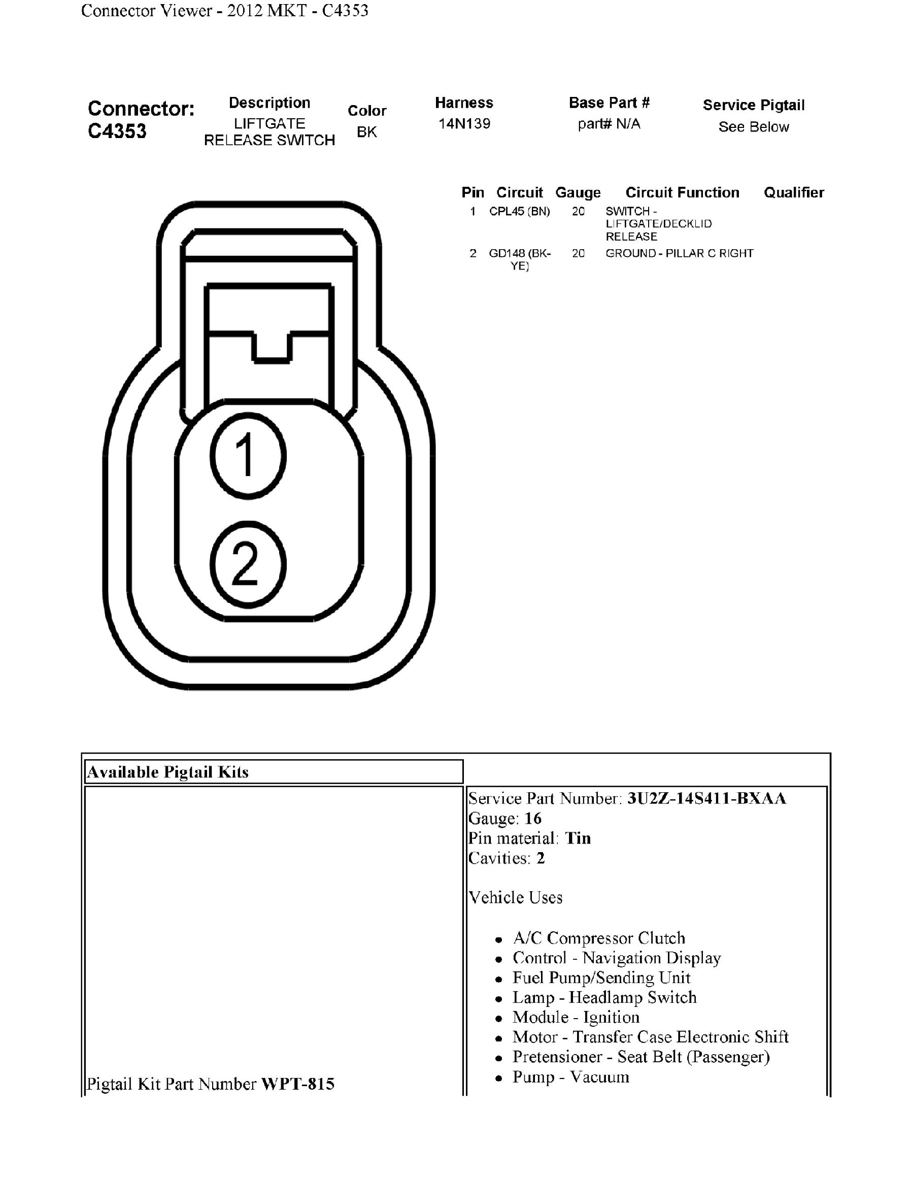 Power Trunk / Liftgate Lock Switch