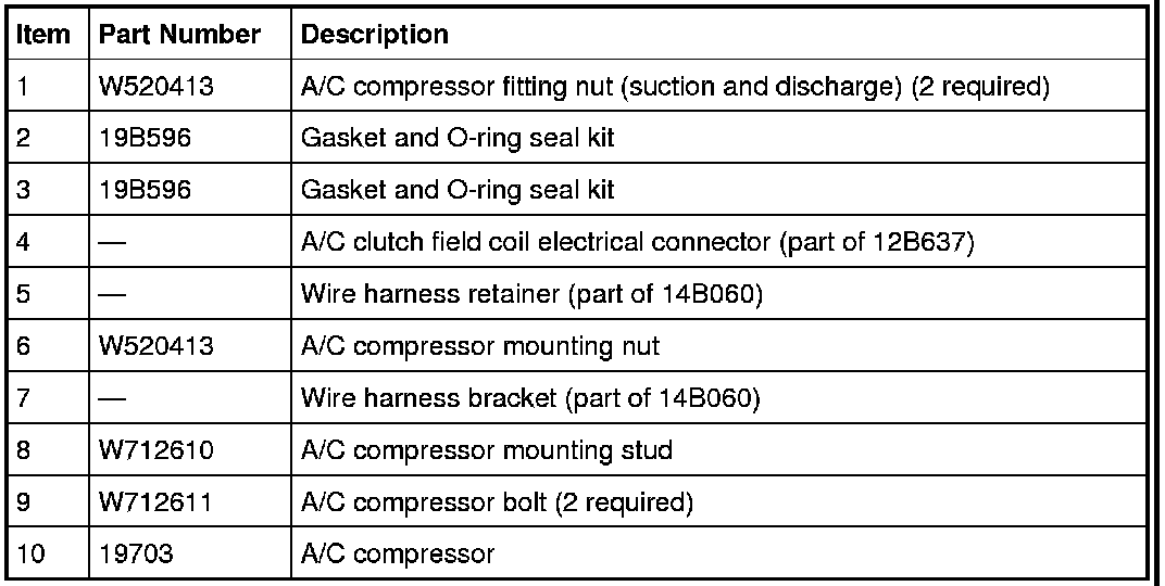 NOTICE: If installing a new Air Conditioning (A/C) compressor due to an internal failure of the old unit, either a flushing procedure or system filtering procedure must be carried out to remove contamination from the A/C system. Failure to remove contamination from the A/C system, if present, will result in poor A/C performance and/or damage to the new A/C compressor and other components.
