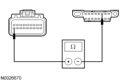 - Measure the resistance between the OCSM (Occupant Classification System Module) C3159-9, circuit VDB05 (WH), harness side and the DLC (Data Link Connector) C251-14, circuit VDB05 (WH), harness side.