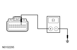- Measure the resistance between the C-CM (Cruise-Control Module) C1582-3, circuit GD120 (BK/GN), harness side and ground.