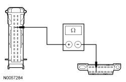 - Measure the resistance between the LTM (Liftgate/Trunk Module) C4174A-1, circuit GD149 (BK/GY), harness side and ground.